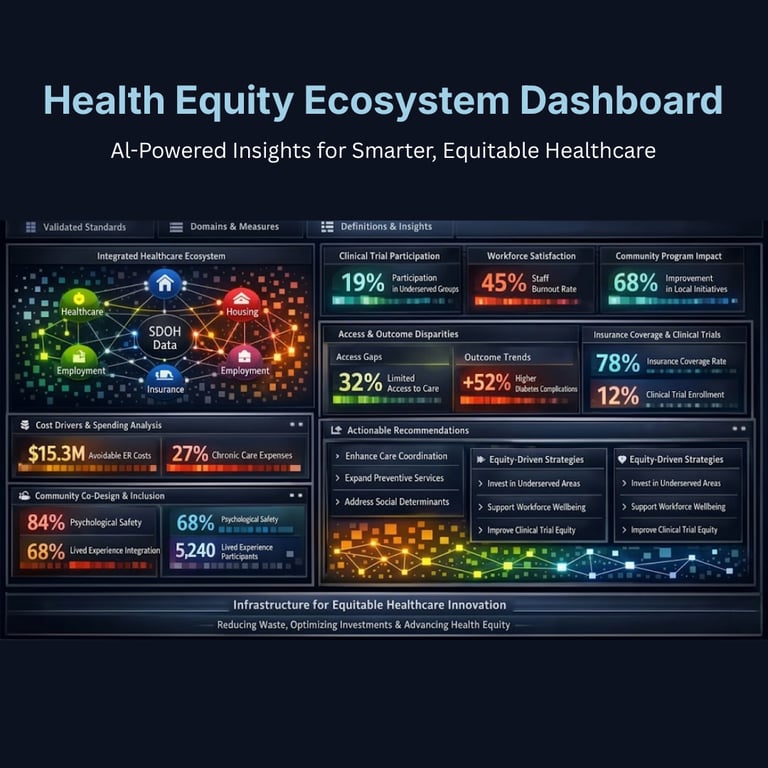 ✓ Design and implement AI-enabled Health Equity Ecosystem Dashboard